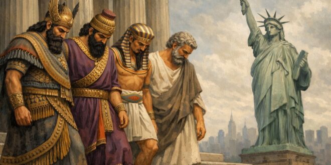 لما الركاد .في یومٍ غریب من أیام التاریخ، قررت الحضارات المشرقیة القدیمة أن تعقد جلسة طارئة لیس بسبب حربٍ كبرى، ولا بسبب كسوف الشمس، بل بسبب خبرٍ صغیر تكرر كثیرًا في نشرات القرن :الحادي والعشرین .شعوب الشرق الأوسط إذا غضبت من حكامھا… تخرج إلى الشارع وترفع علم دولة …